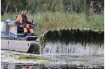 Um der Plage Herr zu werden, setzt das Amt für stadtwirtschaftliche Dienste jetzt ein spezielles Amphibienfahrzeug ein. Es kann schwimmend auf dem Wasser und ebenso im weichen Untergrund der Uferbereiche arbeiten.